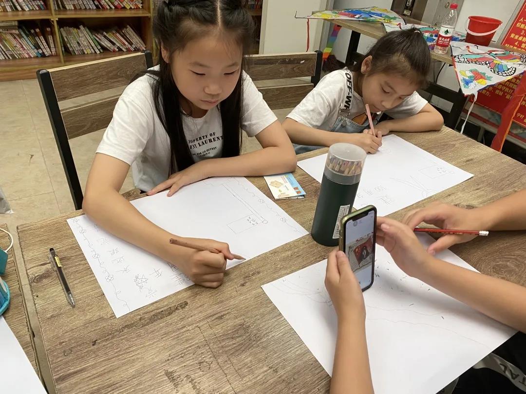 志愿者向小朋友们发放纸张、彩笔等材料,一起绘制红色手抄报,小朋友们学以致用开始积极行动起来,纷纷发挥自己的想象力,融合党标、党徽、党旗等红色元素,通过剪、粘、贴等方式制作出一幅幅展现爱党、敬党的红色手抄报,并相互展分享成功的喜悦。