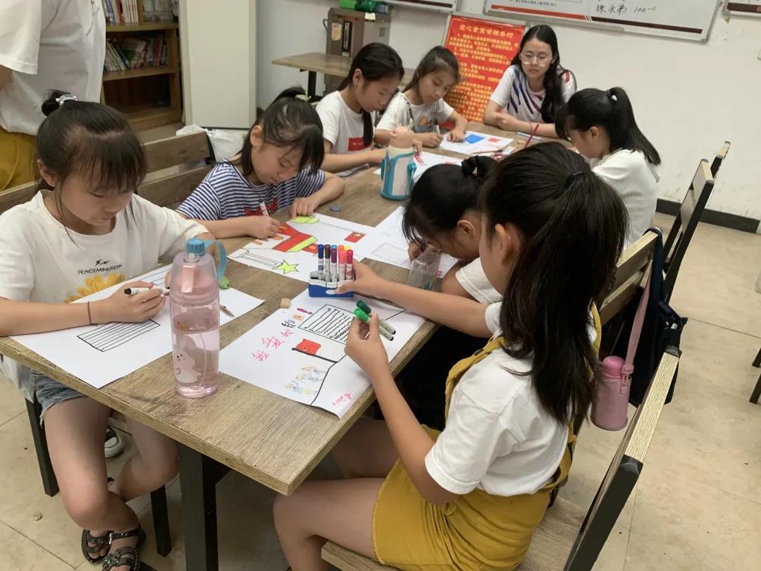 文明实践不停步,志愿服务正当时。7月7日下午管理学院红色蒲公英关爱留守儿童实践队海滨队来到了宁城社区为小朋友们开展了创意黏土、红色手抄报课堂。