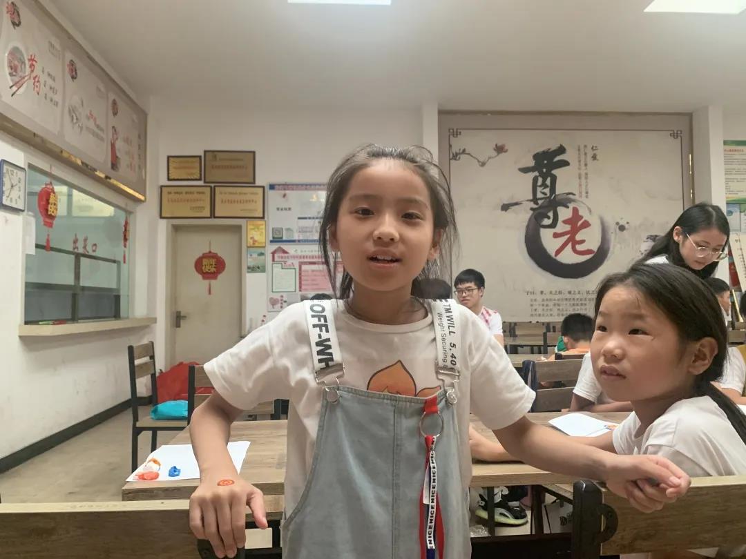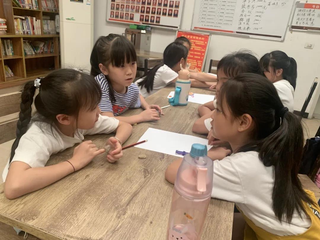 随后志愿者们让孩子们以小组为单位进行“红色故事”讨论分享会,讨论结束举手分享红色故事。小朋友们慷慨激昂讲述经典红色故事,有小英雄王二小、小兵张嘎、中国共产主义运动先驱李大钊;生得伟大、死得光荣的刘胡兰;忠心一片惊天地的杨靖宇;舍生取义、感天动地、为了新中国前进的董存瑞。一个个革命先烈的经典形象在讲述中一一呈现,孩子们备受感染,革命精神在不知不觉中浸透到每一位学生心田里。