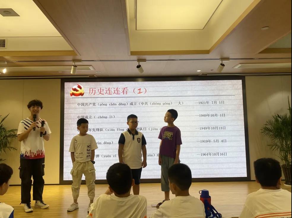 活动在严肃的开场仪式中正式开始,实践队员们结合党史,带领着少先队员们以独特的方式庆祝建党百年,分别有:历史连连看、烽火传递、看图猜名等,采用奖罚机制,让每一个少先队员都参与进来,推进党史学习教育走深走实,延续红色血脉。