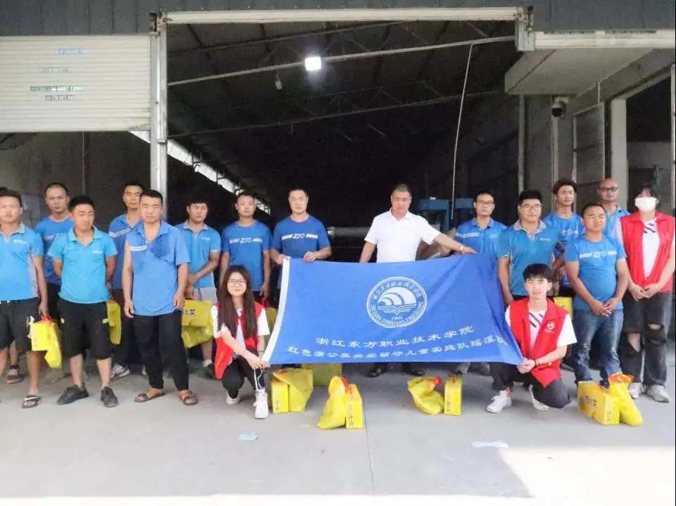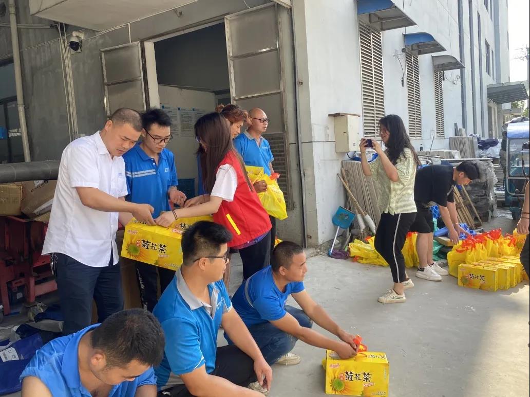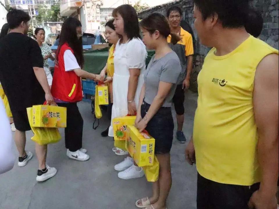 在知识竞赛活动的另一边,实践队队长楼颖带队与党群服务中心人员为快递员送去了花露水、沐浴露、冰袖、饮料等物资,慰问加班加点奋斗在运输业一线的“快递小哥”。