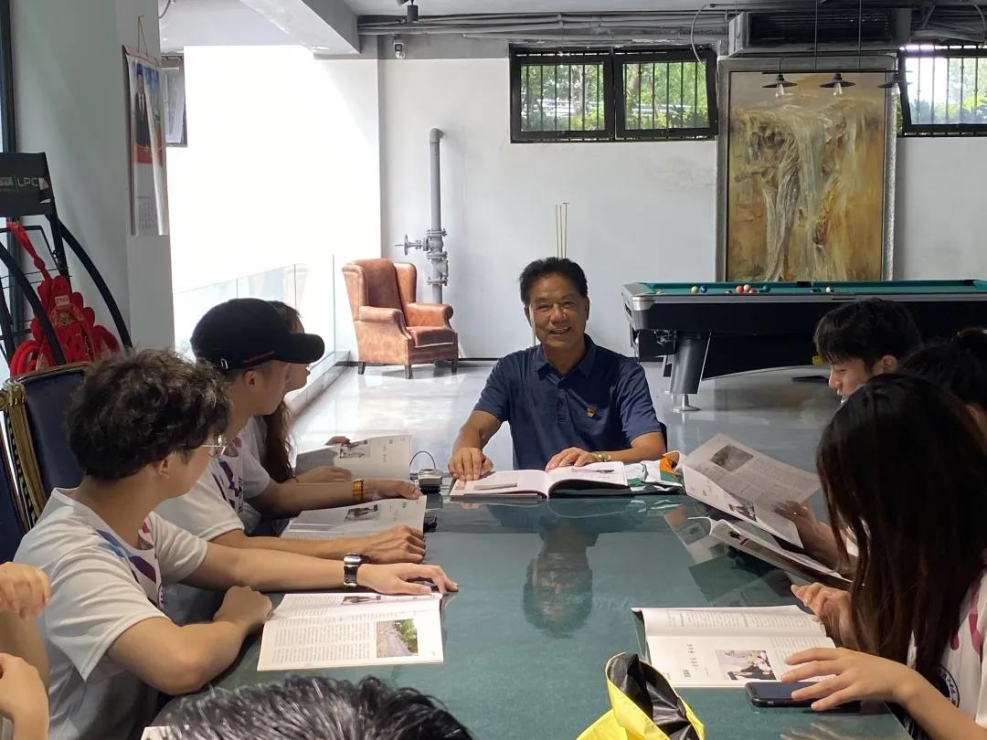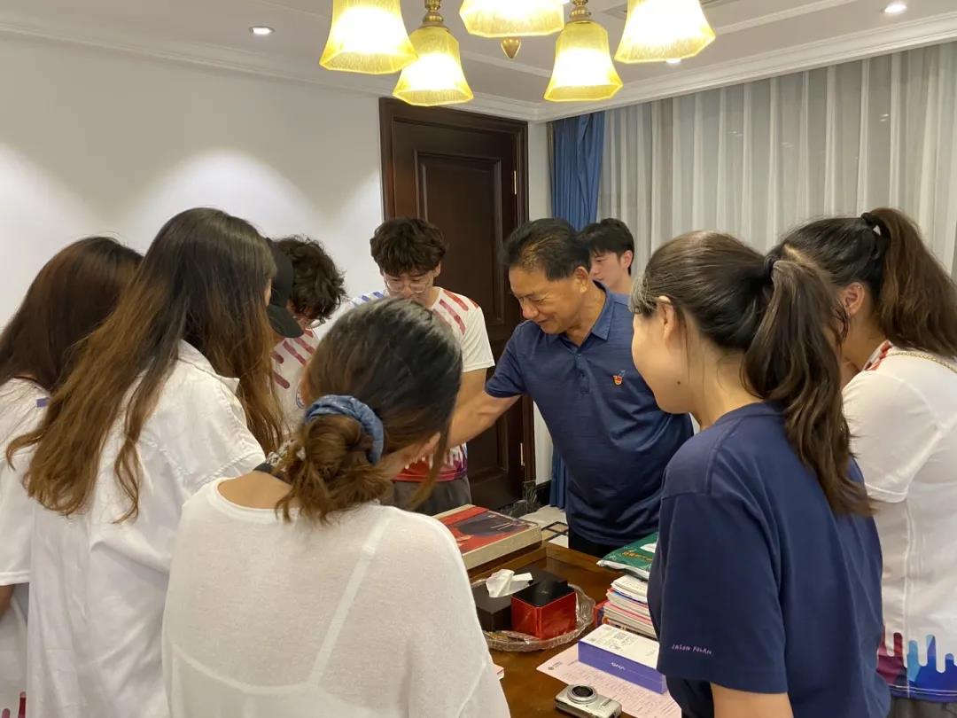 在张老家中,我院志愿者同学们跟随张老的脚步参观了纪念中国共产党一百周年华诞的书画作品展示墙,张老还就作品与中国共产党的百年历程做了简单的讲解和介绍,之后还热情的给同学们展示了红军长征的纪念册及荣誉勋章。