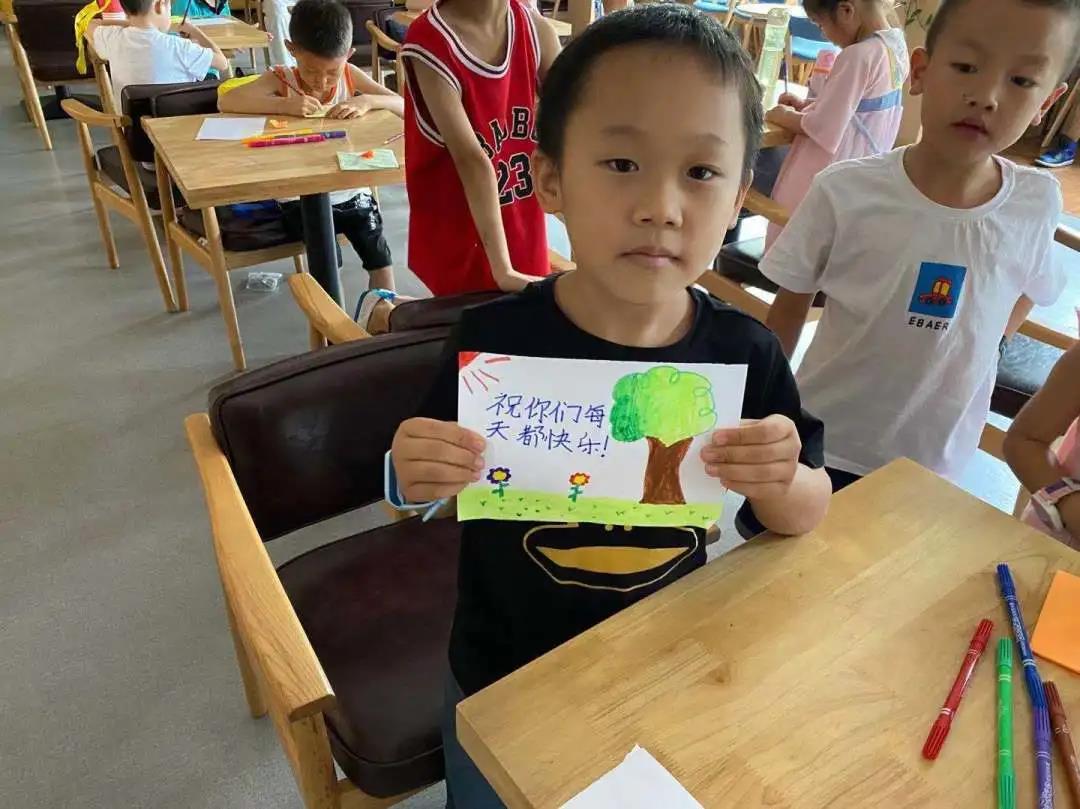 上午,实践队员耐心的讲解笔画的画法和意义,随后,给小朋友们分发了纸张和水彩笔,让他们根据自己的所思所想,在纸张上描绘出自己的一片蓝图,经过一小时的努力,小朋友们都完成了自己的作品,孩子们开始展示自己的得意作品,各式各样,美不胜收,每一幅都有自己的特色。
