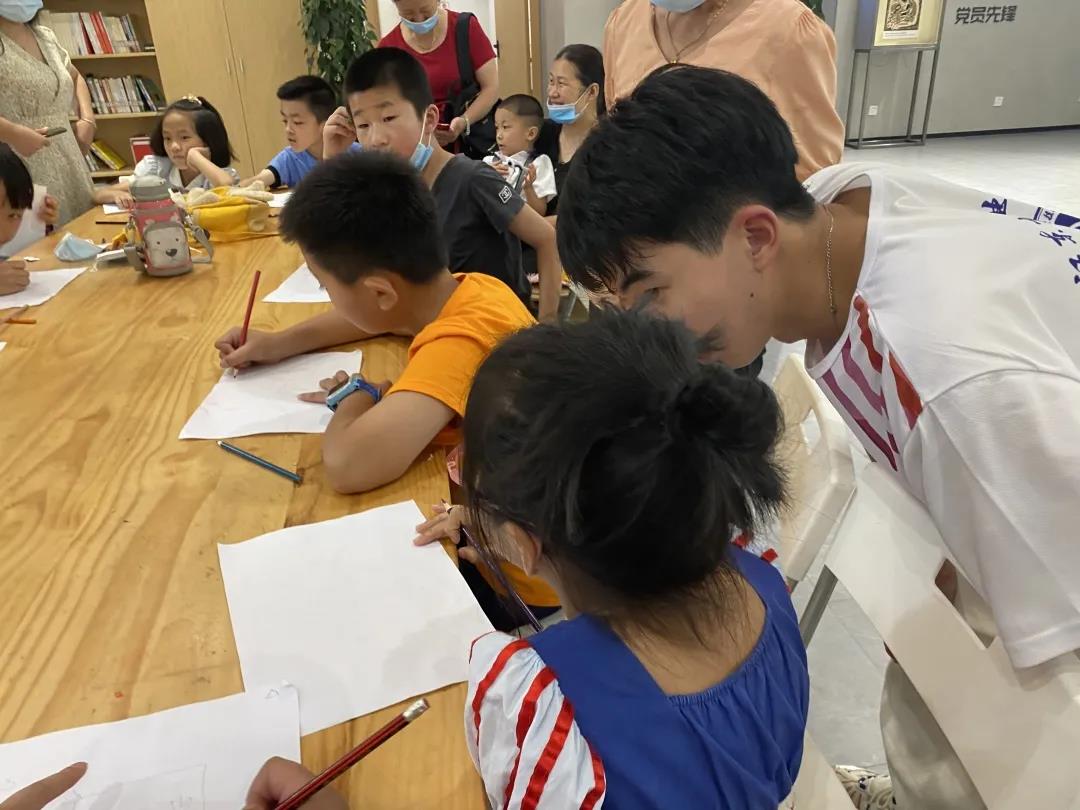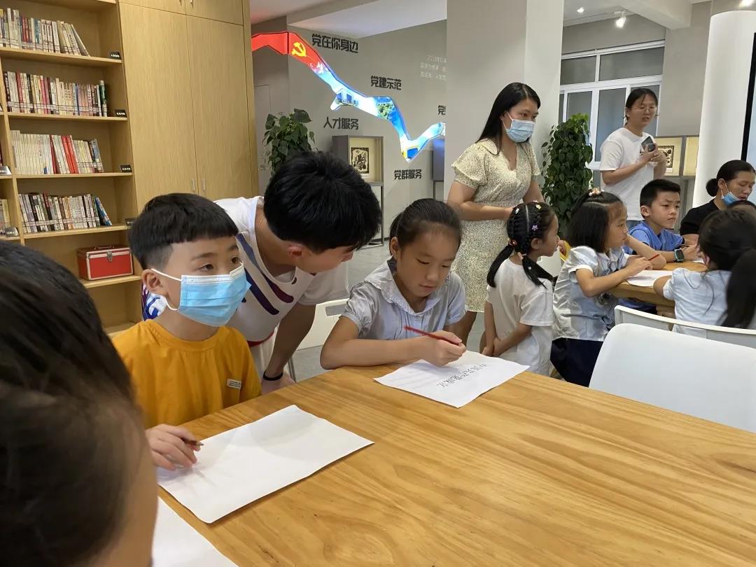 随后,实践队员分发纸张给小朋友们进行事件绘画,经过不懈努力,一个个生动的历史画面跃然纸上,让小朋友们更深刻地体会到了中国共产党的伟大和幸福生活的来之不易。