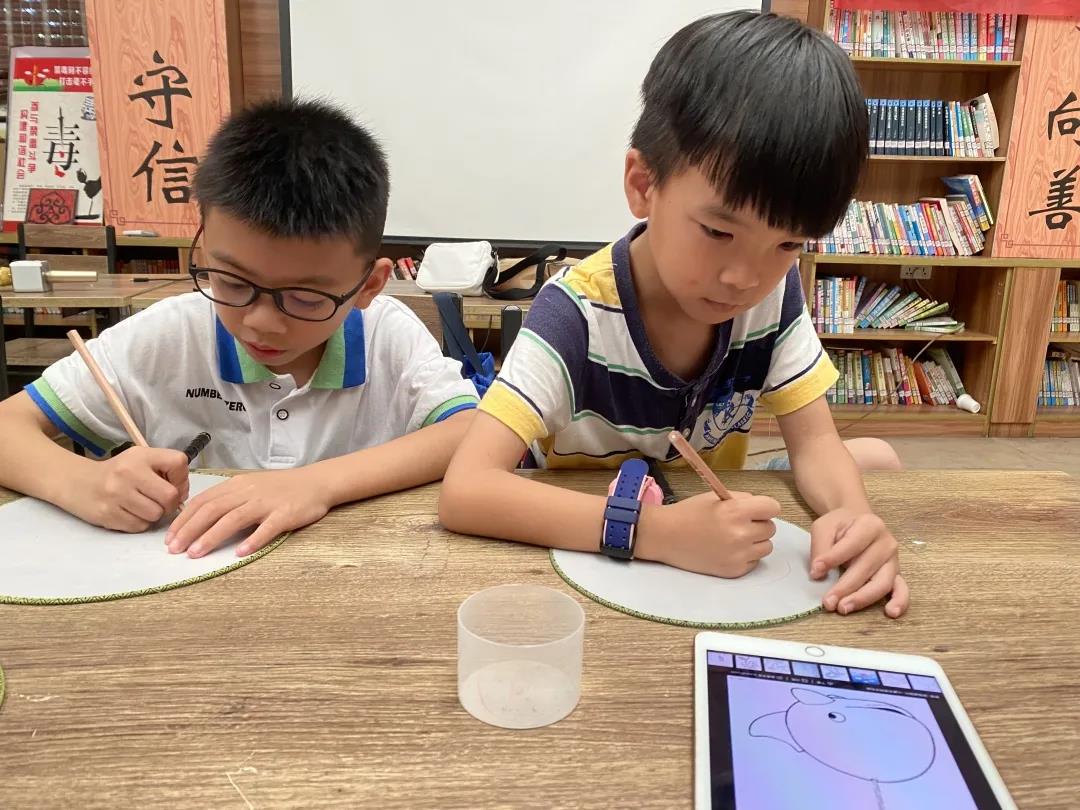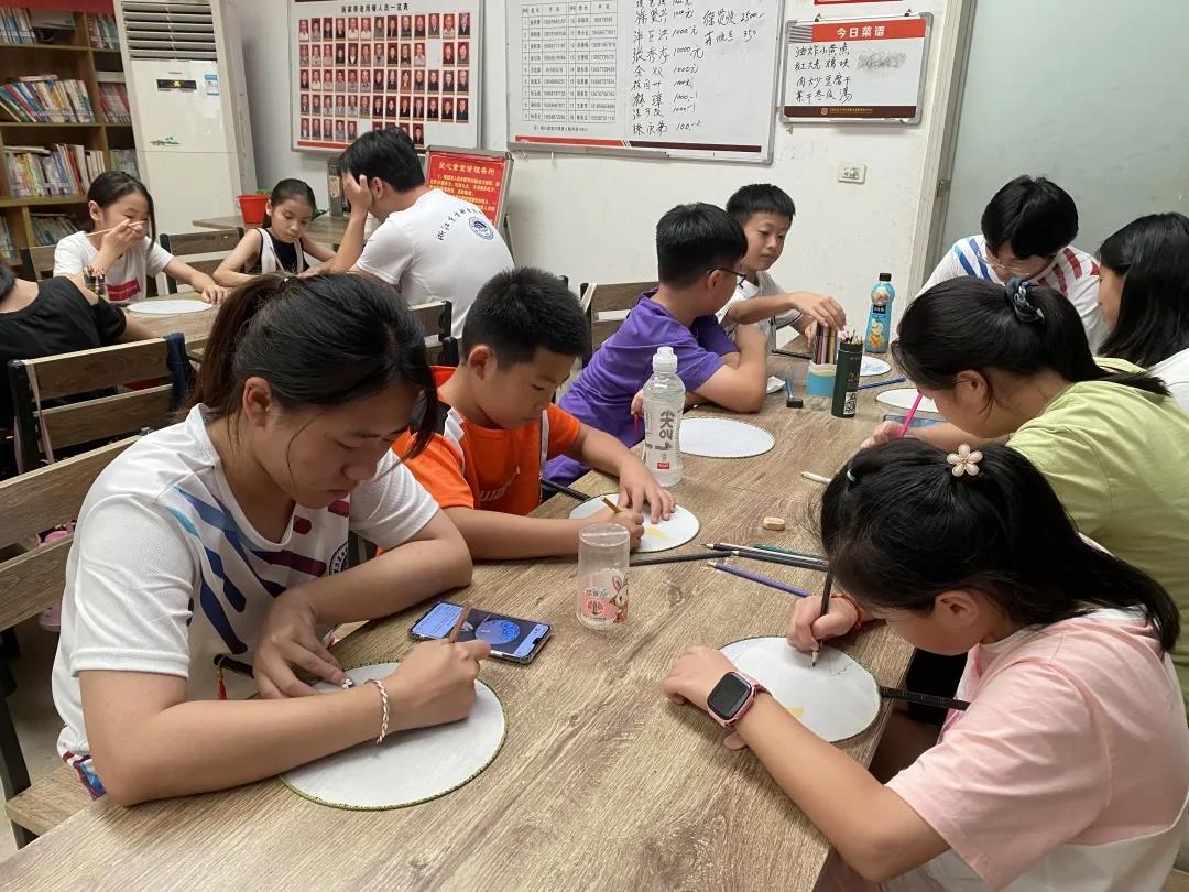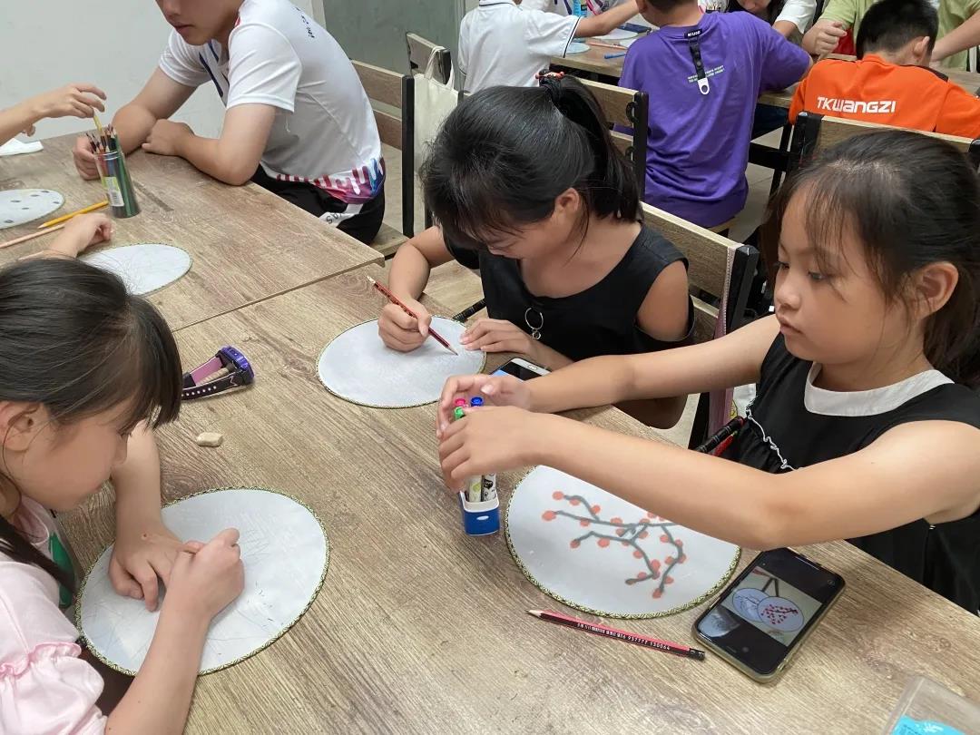 在活动现场,工作人员为大家精心准备了制作精良的空白扇子,种类齐全的绘画工具。小朋友们认真勾勒,专心描绘,将自己喜欢的颜色涂在扇子上,孩子们用他们小小的双手,发挥自己的想象力,执笔亲绘花鸟虫鱼、梅兰竹菊,天马行空的抽象画......