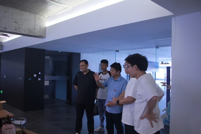 温州聚成电子商务有限公司总经理韩寿斌对数字商务学院一行的到访表示热烈欢迎,并带领学院领导实地考察学生实习工作环境。走访过程中,韩寿斌介绍了公司的基本情况,表示企业的用人需求与学院的人才培养目标高度匹配,希望双方加强交流,进一步推进合作。