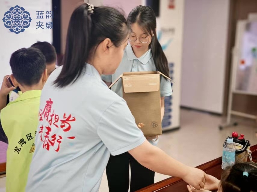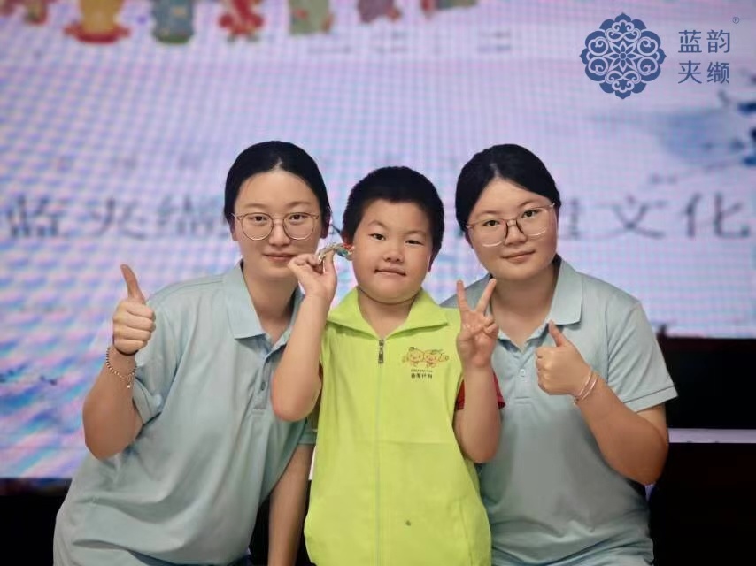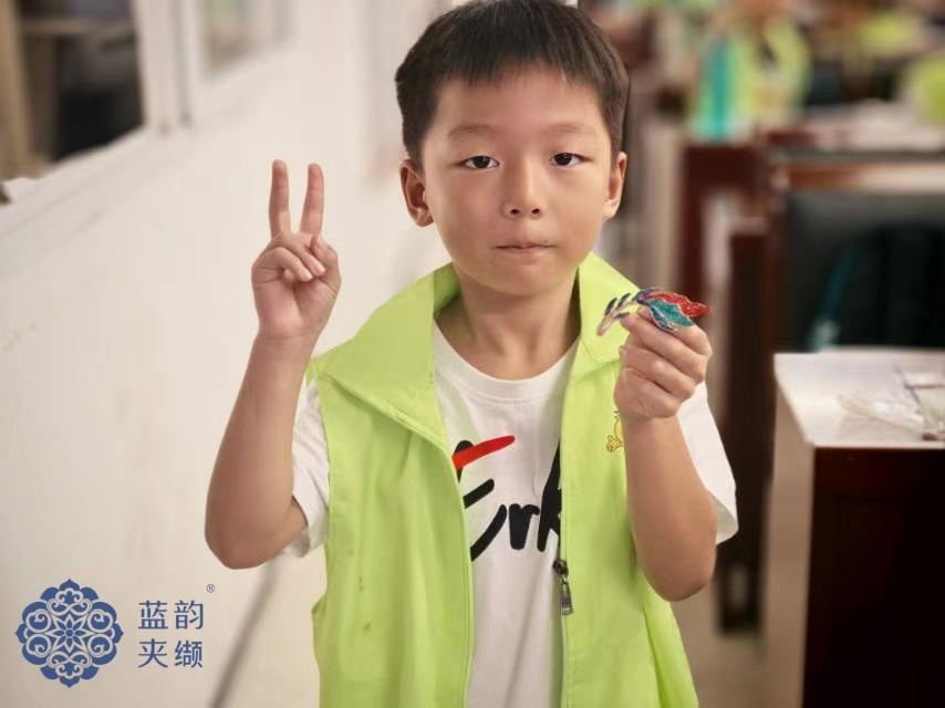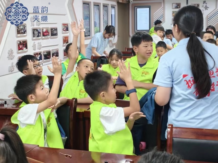 活动尾声,一场别开生面的“小小传承人”心声采访温暖上演。“今天的蓝夹缬像变魔术一样神奇!”“我知道了蓝草可以做这么漂亮的颜色!”“我以后也想学做更多花纹!”面对采访,孩子们的热情如潮水般涌来,小手再次林立如林,争相分享着新奇的体验与满满的收获。童真的话语里,是对非遗技艺最直观的喜爱,是对动手实践最纯粹的满足。
