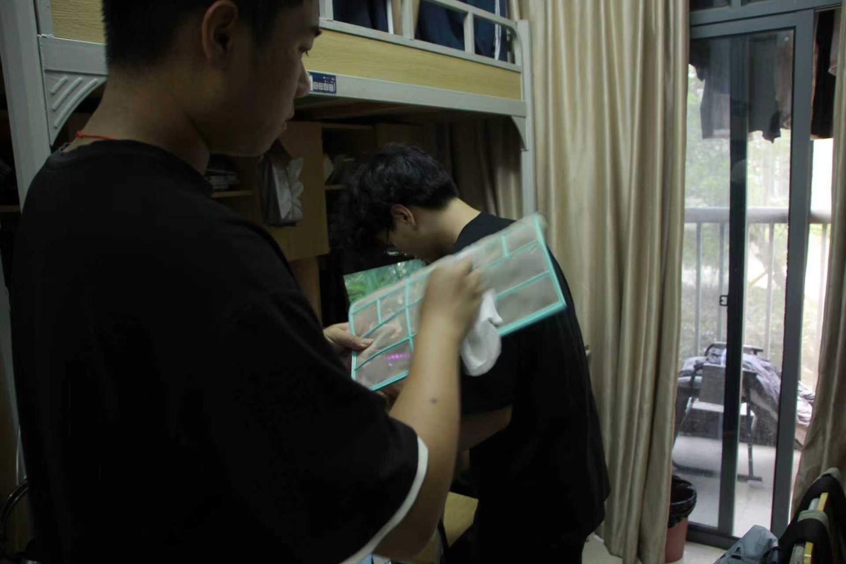 活动现场,学生干部们分工协作、默契配合:有人细心拆卸空调面板,有人耐心清理积尘滤网,面对清洁过程中的脏活、累活,干部们毫无怨言,始终以饱满的热情投入其中,用双手为同学们的舒适生活“扫清障碍”。