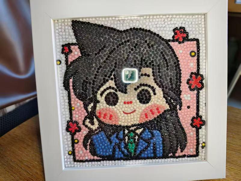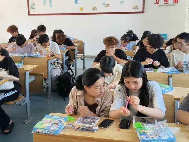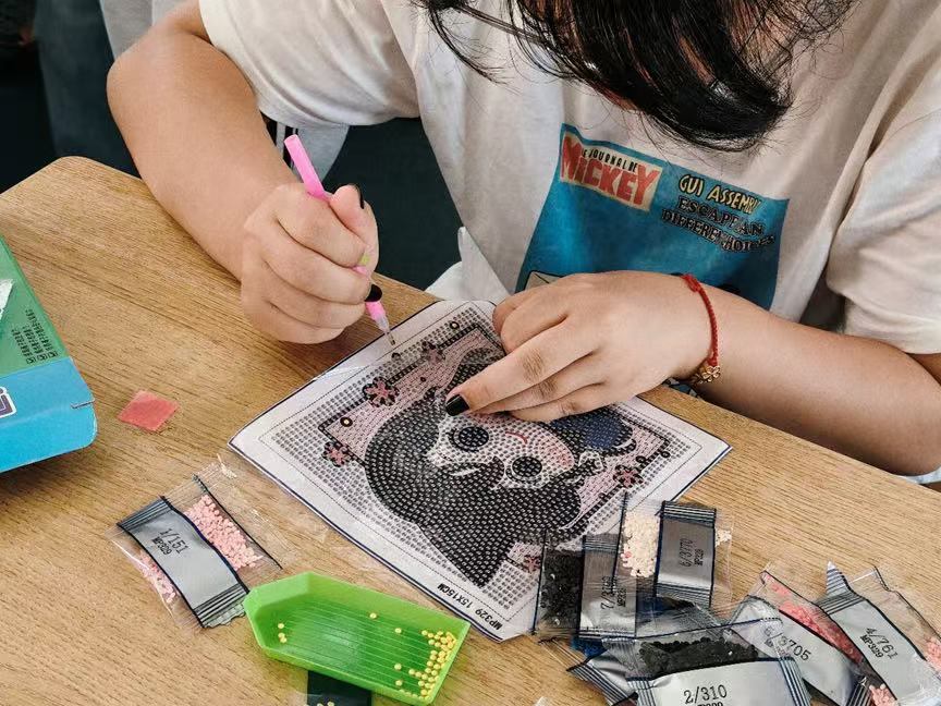 一个小时的时光悄然流逝,一幅幅完整的钻石贴画跃然眼前。或明快绚烂的秋日风景,或灵动可爱的治愈形象,每一幅作品都凝聚着创作者的耐心与巧思。同学们手持自己的作品互相展示、拍照留念,脸上洋溢着满满的笑意,在分享与交流中传递着创造的快乐与温暖。