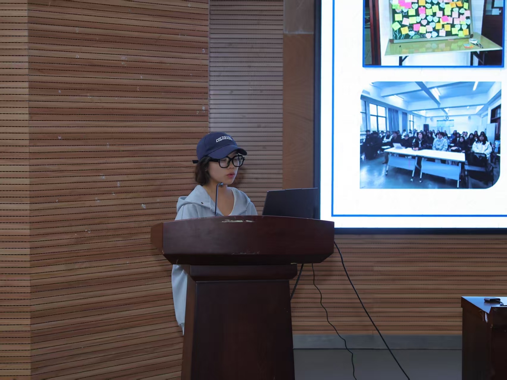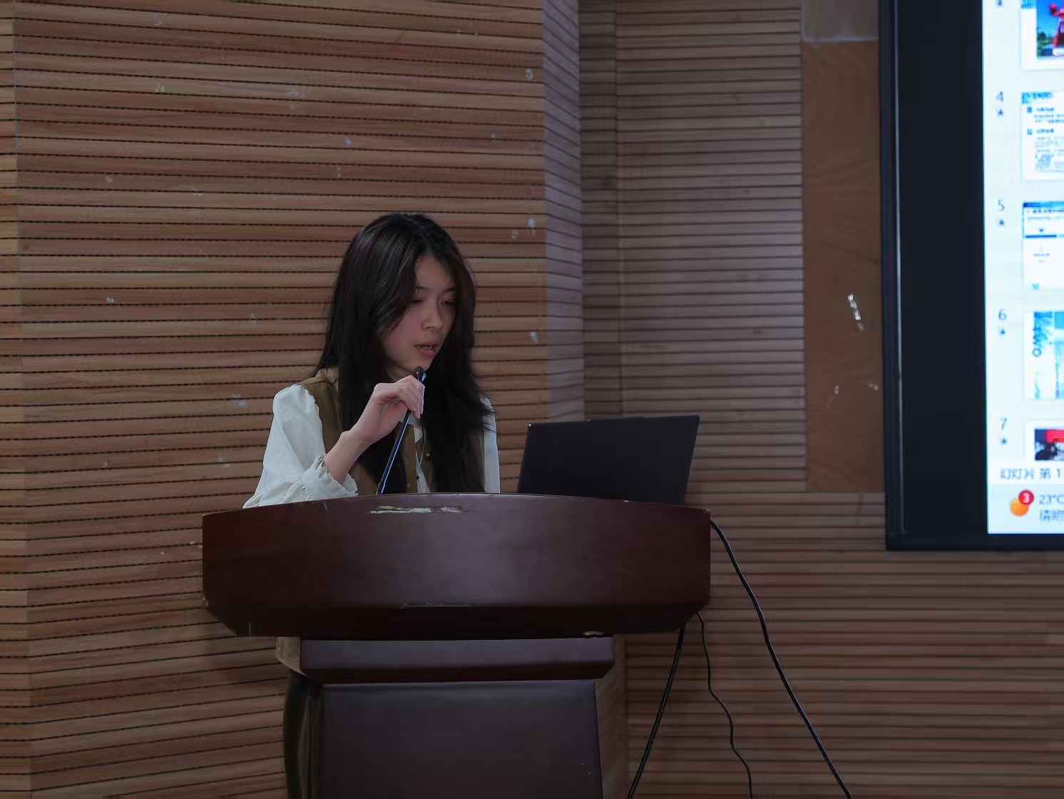 在答辩环节,各班级代表借助PPT进行了生动而详尽的讲述。他们从班级的基本概况出发,全面展示了集体荣誉、学风建设等方面的丰硕成果,多维度、立体地呈现了各具特色的班级风貌。同时,他们也结合班级发展的实际情况,对未来学风建设的路径与目标进行了细致规划,展现出了清晰的思路和明确的方向。
