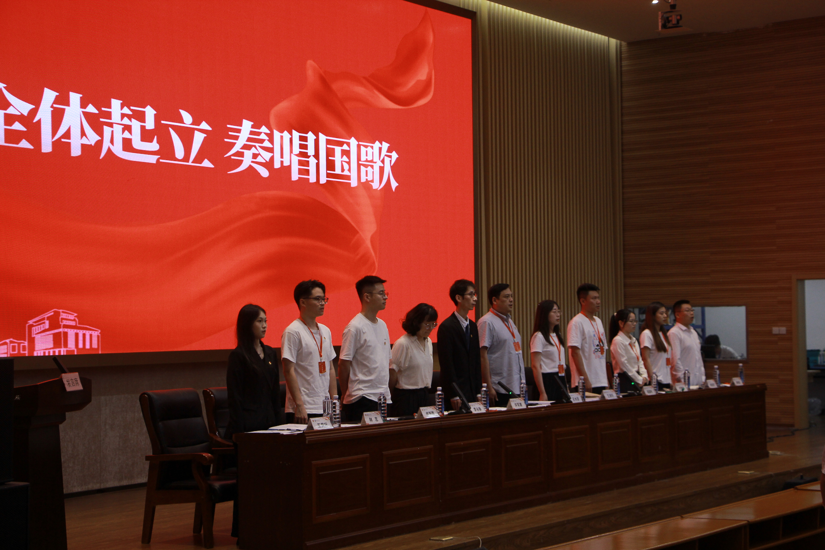 在热烈而持久的掌声中,数字商务学院第三次团员、学生代表大会圆满落下帷幕。全体代表起立,齐声奏唱《团歌》,激昂的歌声振奋人心、催人奋进。最后,学院领导与新当选委员以及上届全体学生干部合影留念,定格这一难忘的瞬间。