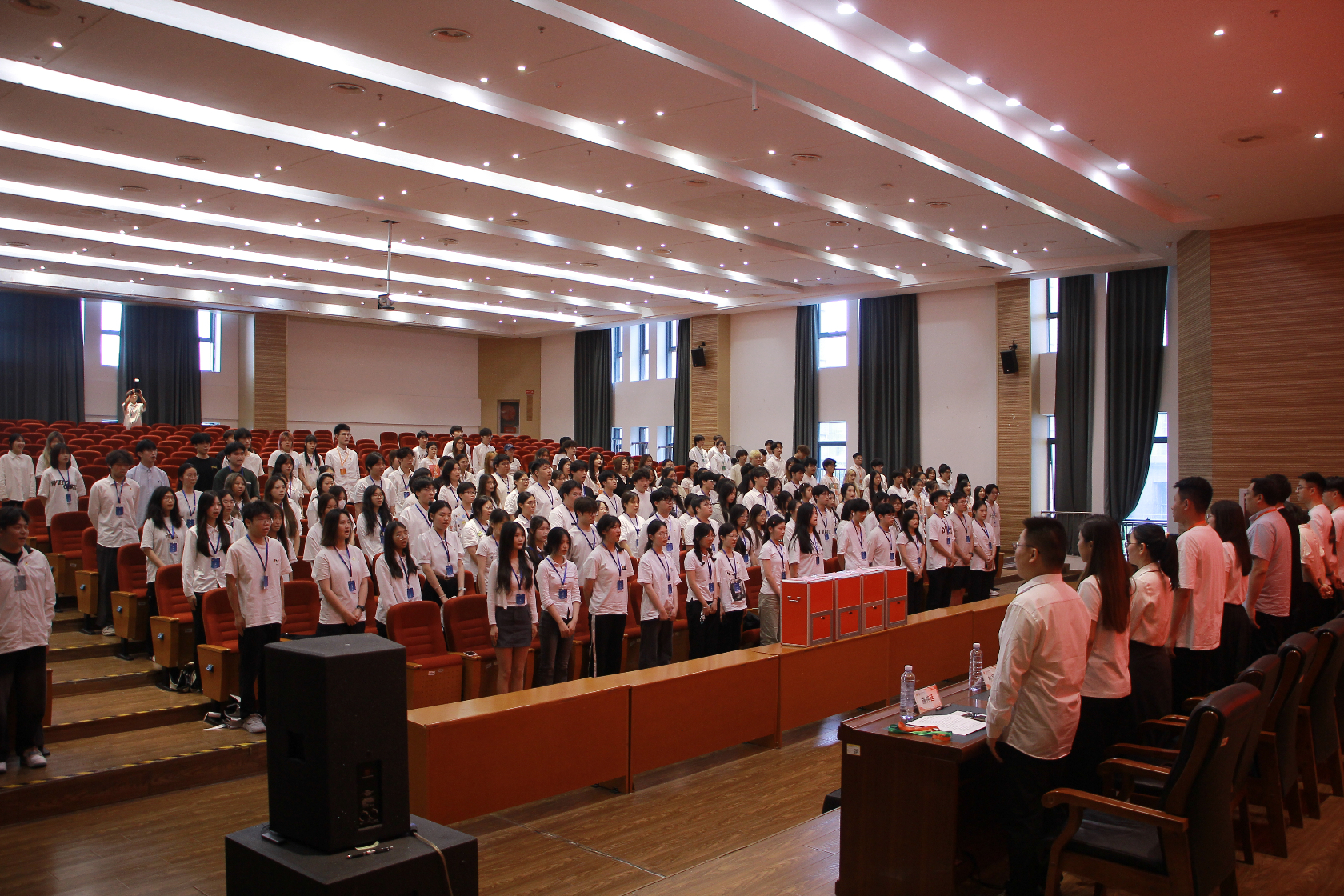 大会在庄严肃穆的国歌声中正式拉开帷幕。数字商务学院党总支副书记王木顶、学工办副主任王凌轩、团总支书记许军建出席会议,全体辅导员、团学干部、干事以及各班级代表参会。大会由团总支书记许军建主持。