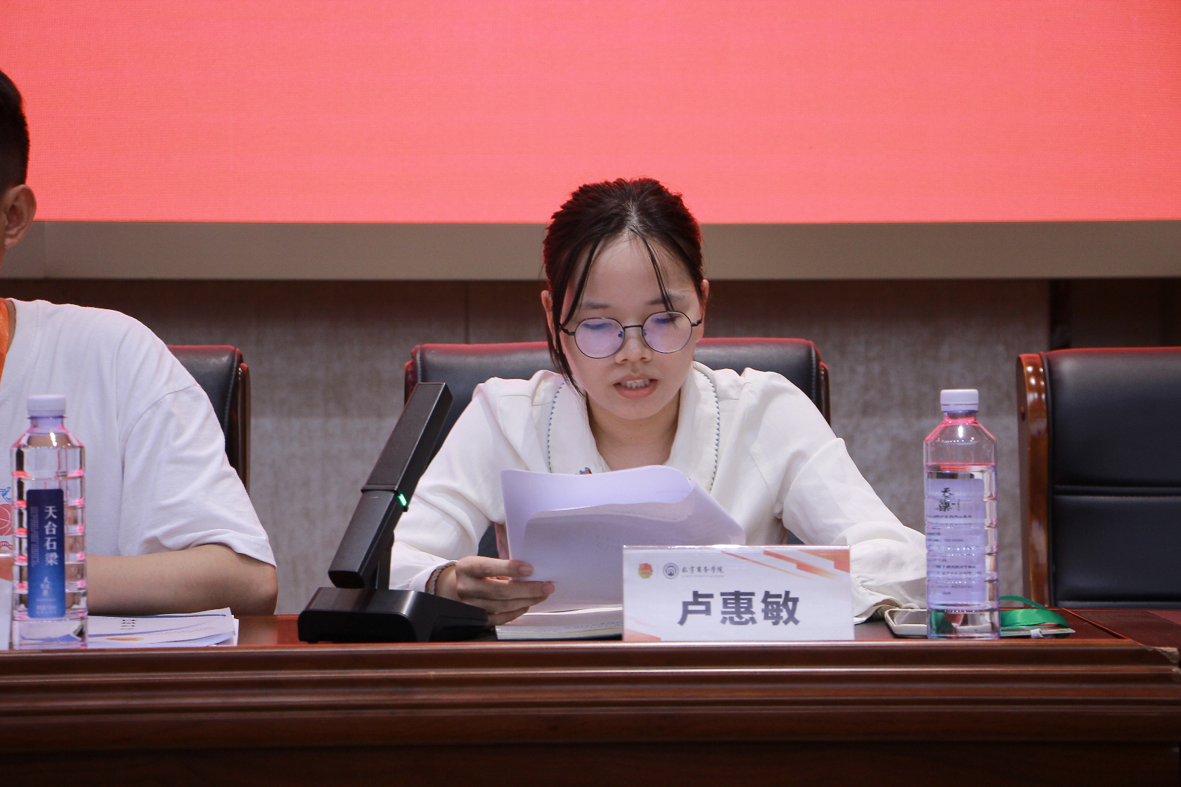 数字商务学院团总支副书记王荧妃同学与第二届主席团成员吴雨宸同学分别作工作报告。她们全面且细致地回顾了团总支学生会在过去一年所开展的各项工作,报告既客观总结了取得的成绩,也坦诚指出了工作中存在的不足,并对未来的工作方向进行了科学合理、切实可行的规划。这份报告为下一届团总支学生会的工作提供了弥足珍贵的经验借鉴和清晰明确的工作指引,充分彰显了团总支学生会成员们勇于担当、积极负责的精神风貌。