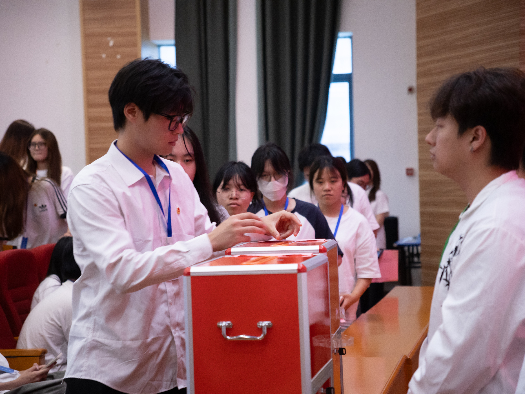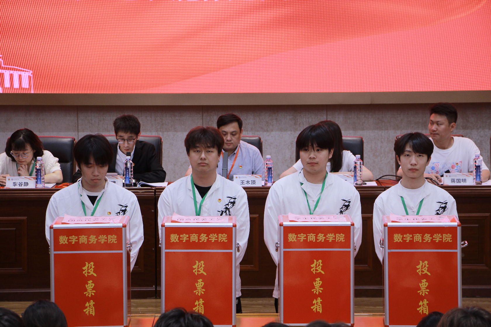大会审议通过了共青团浙江东方职业技术学院数字商务学院第三届总支委员会候选人和数字商务学院第三届学生委员会候选人名单。蒋国明老师、李谷静老师、卢惠敏老师和虞新磊老师分别对各位候选人进行了详尽的介绍,使代表们对候选人的情况有了更为深入、全面的了解。随后,大会审议通过了选举办法以及总监票人、总计票人、监票员、计票员名单。