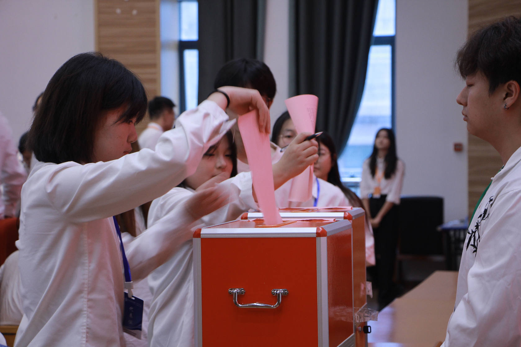 在公平、公正、公开的良好氛围中,代表们有序走向投票箱,郑重地投下了自己神圣的一票。