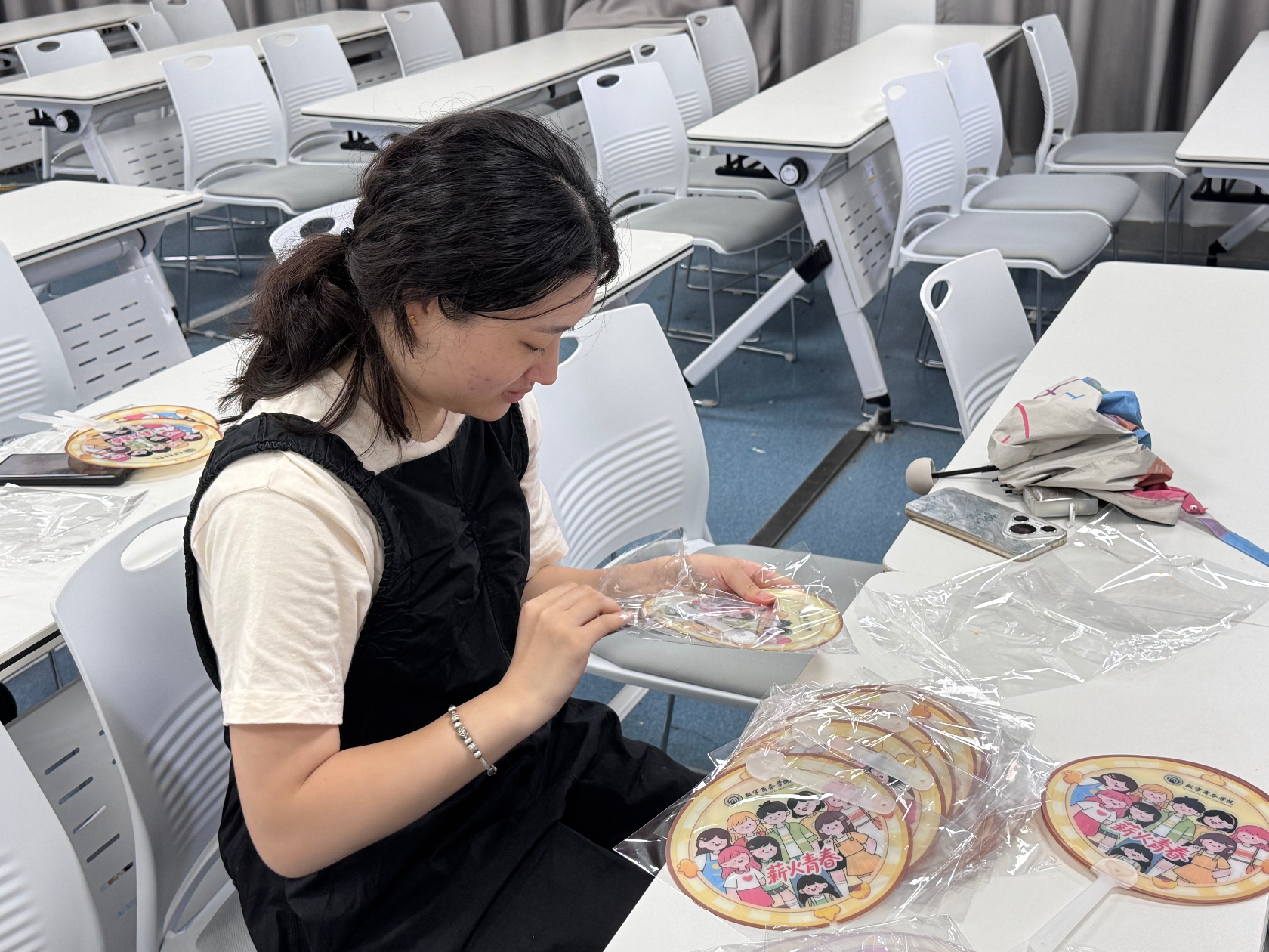 紧接着,林良良老师对实践队后续重点工作进行详细部署。她着重强调,在完成调研问卷优化的基础上,为进一步拉近与当地居民、服务对象的距离,增强实践活动的互动性与亲和力,实践队将开展小礼品赠送活动,而小礼品的组装工作也随即成为当前的重要任务之一。