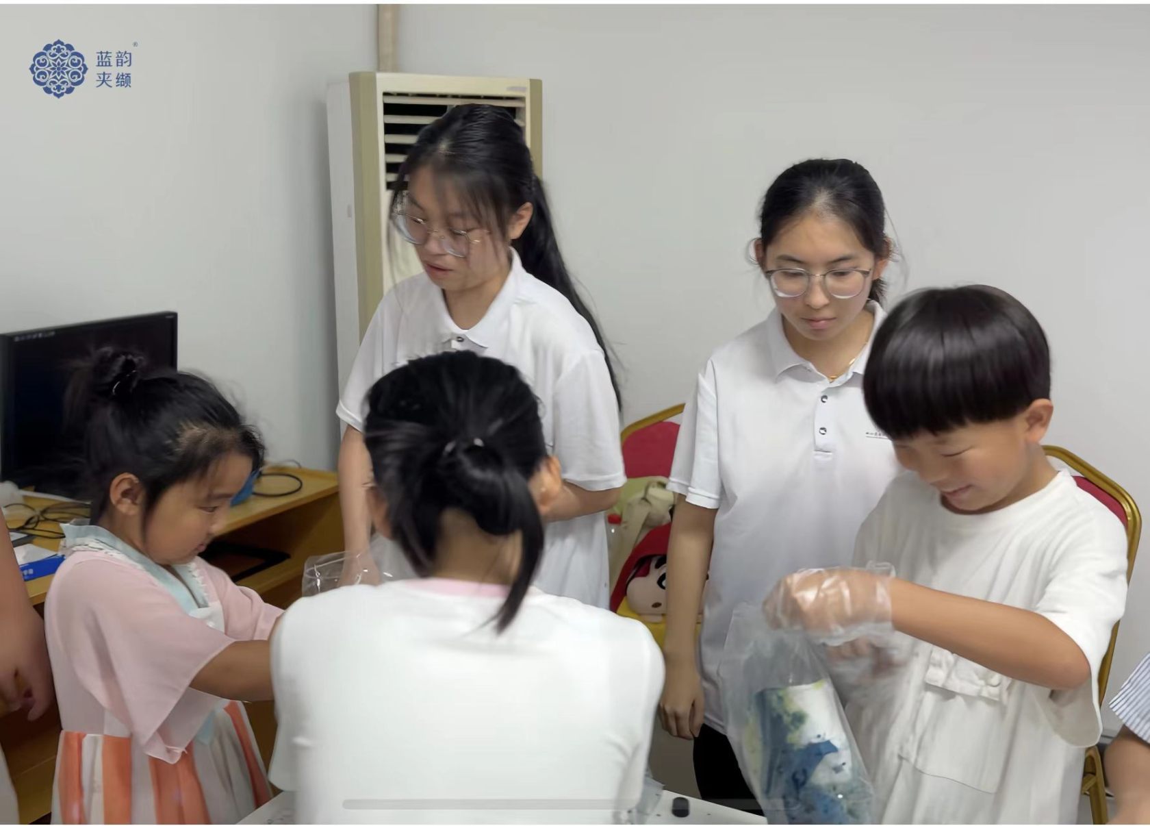 活动伊始,我校数字商务学院蓝韵夹缬实践队与社区工作人员紧密协作,精心布置场地。小朋友们带着好奇与期待陆续抵达,在实践队队员的引导下,用稚嫩的小手在签到表上留下自己的名字,开启了他们的“非遗探索之旅”。
