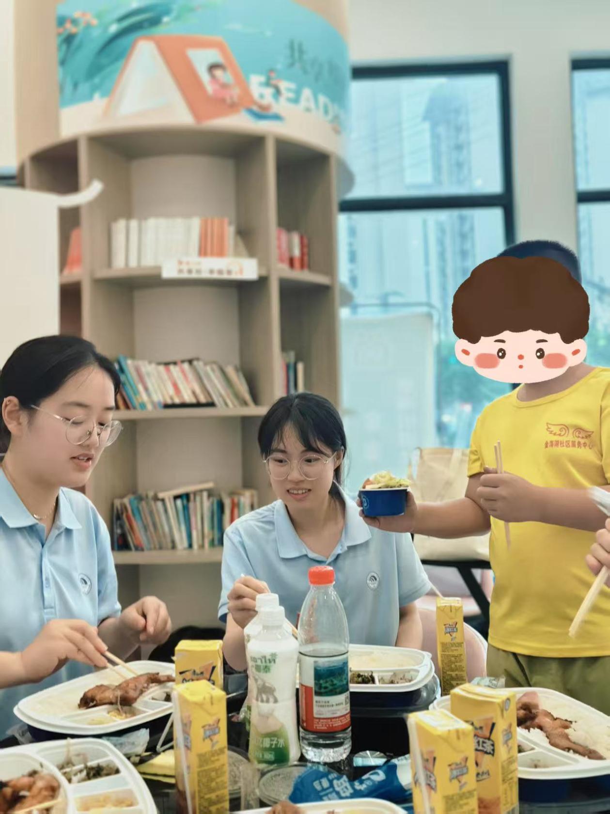 午餐时刻,更是温馨满溢。队员们给孩子们分发餐食,和孩子们围坐在一起,听他们分享学校里的趣事、生活中的小发现。一双双明亮的眼睛闪烁着光芒,诉说着童真与欢乐,队员们也在这交流中,收获着最简单的幸福,餐盘里的饭菜仿佛也因为这份温暖,变得更加美味 。