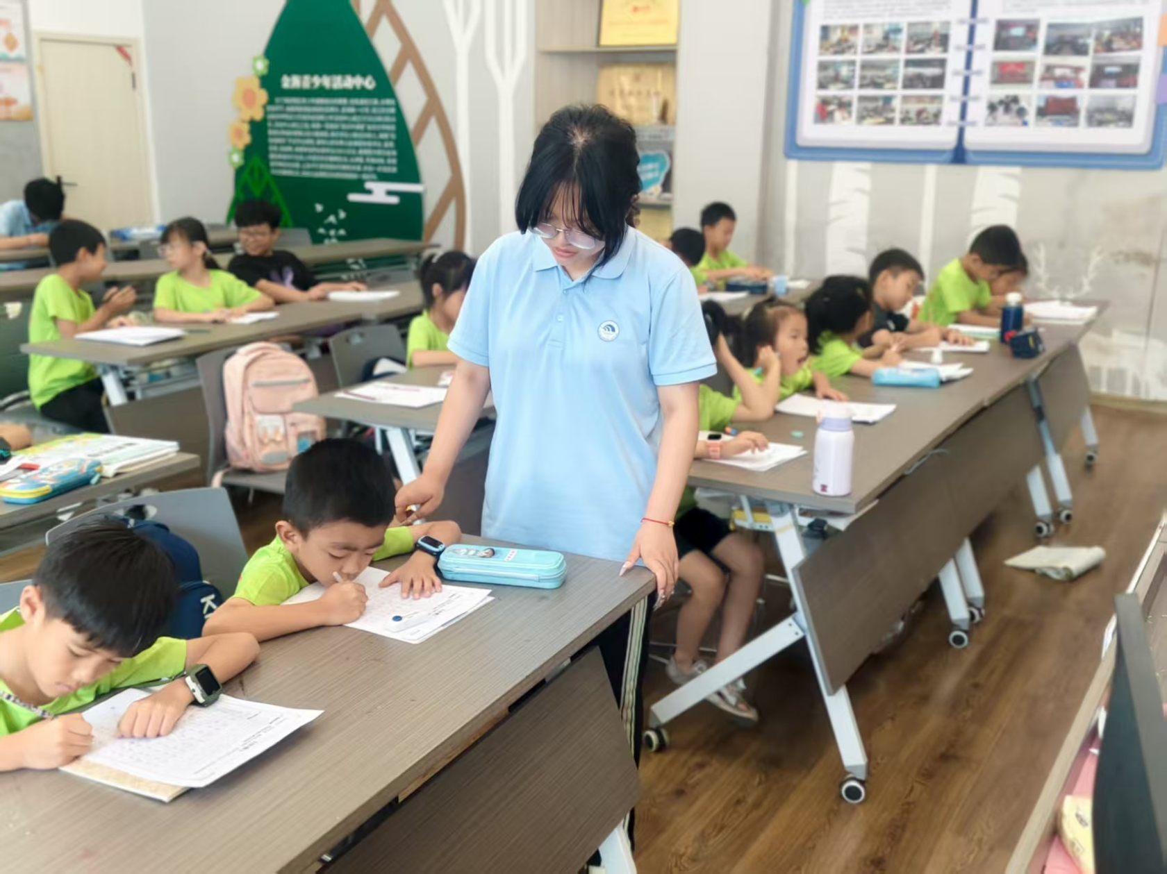 为弘扬志愿服务精神,关爱青少年健康成长,7月10日,“薪火青春”实践队走进金海青少年活动中心,持续开展志愿服务活动。本次活动分为上下午场次,实践队成员全程协助活动中心授课老师,保障活动顺利进行,为孩子们营造了一个安全、温馨、充实的学习环境。