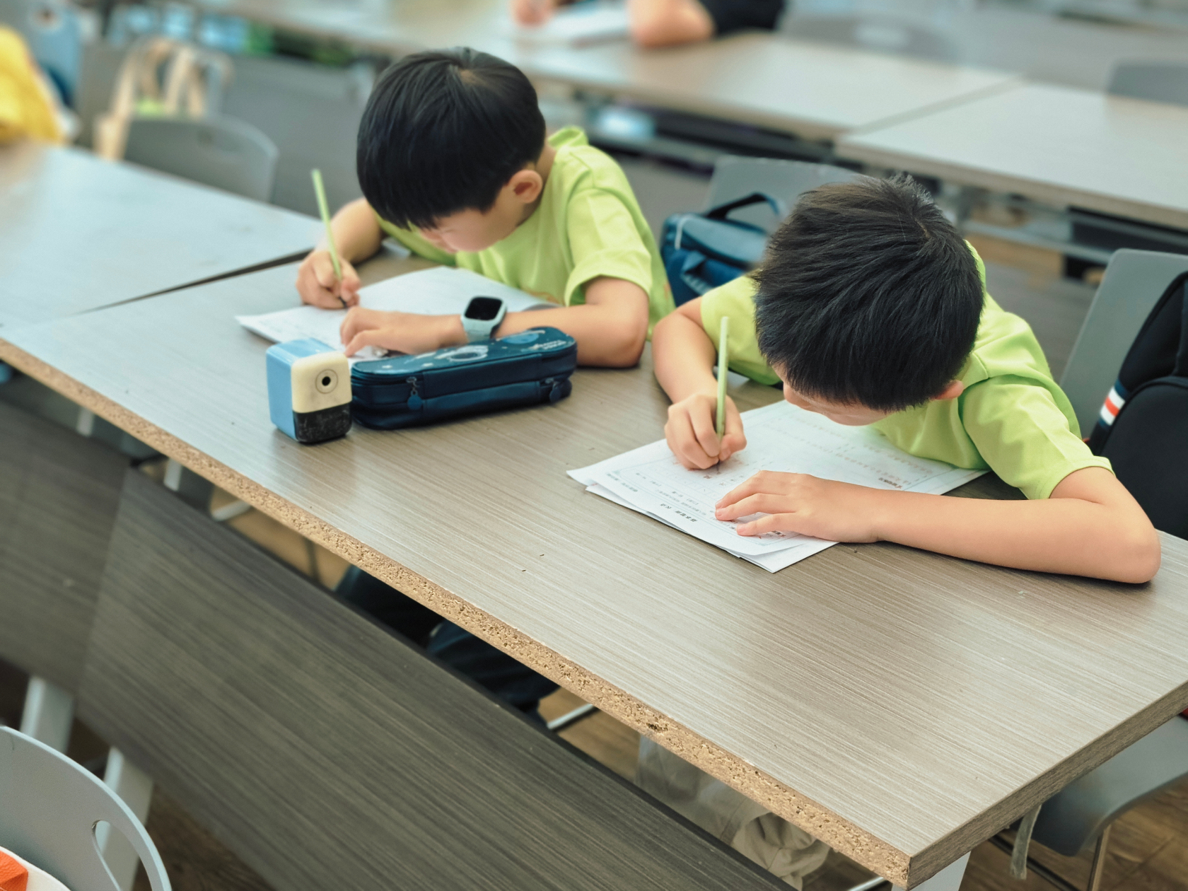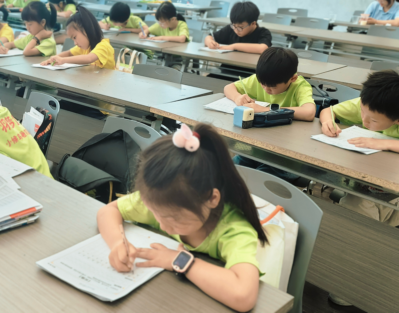 随后,授课老师为孩子们带来了一场生动有趣的“防雨防雷小知识”科普讲座,通过图文并茂的PPT和互动问答,讲解了雷雨天气的安全注意事项。紧接着的练字课则显得格外沉静温润,老师从基本笔画入手,手把手指导孩子们正确握笔、运笔,强调“字如其人”的道理。实践队成员在旁协助老师分发练字本和文具,帮助孩子们调整坐姿,确保每位孩子都能专心练习。