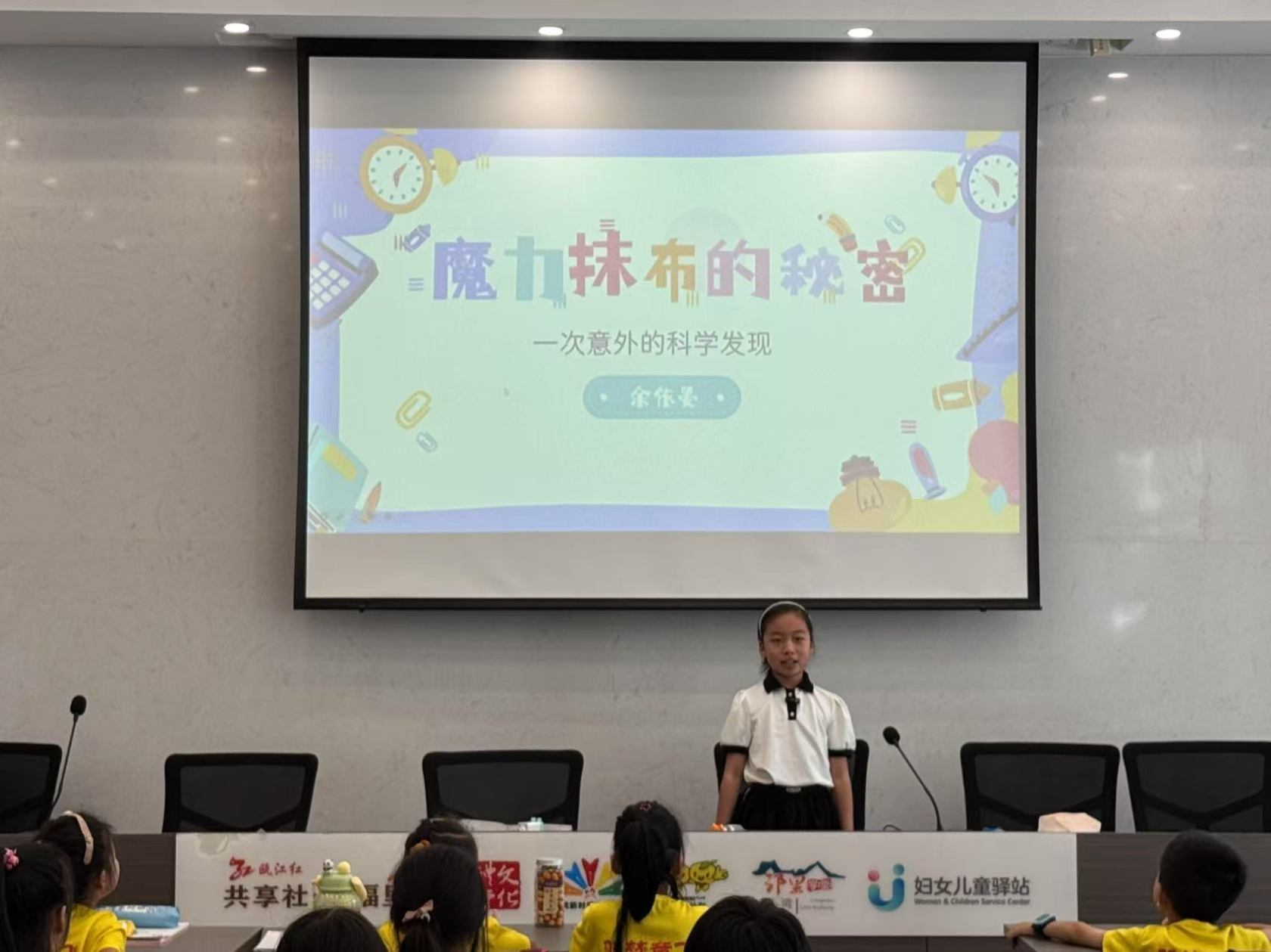 7月11日,龙湾区外国语小学的余依晏小朋友带来了特别分享——“魔力抹布的秘密”。原来她在大扫除时发现,湿抹布擦东西总比干的干净,便带着这个生活小发现来和小朋友们交流。随后,老师接过话题,用简单易懂的语言讲解了其中的科学原理:水让抹布纤维更贴合物体,还能溶解污渍,“魔力”其实源于科学。