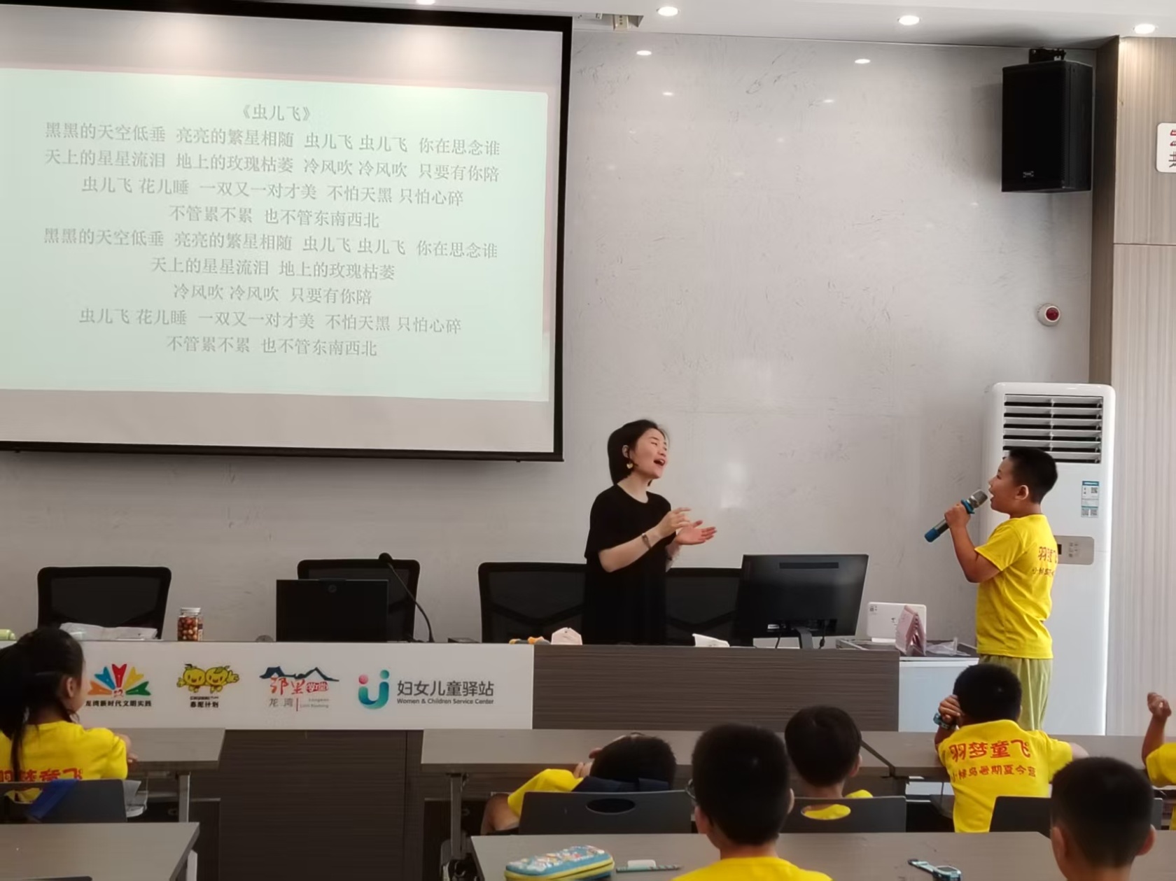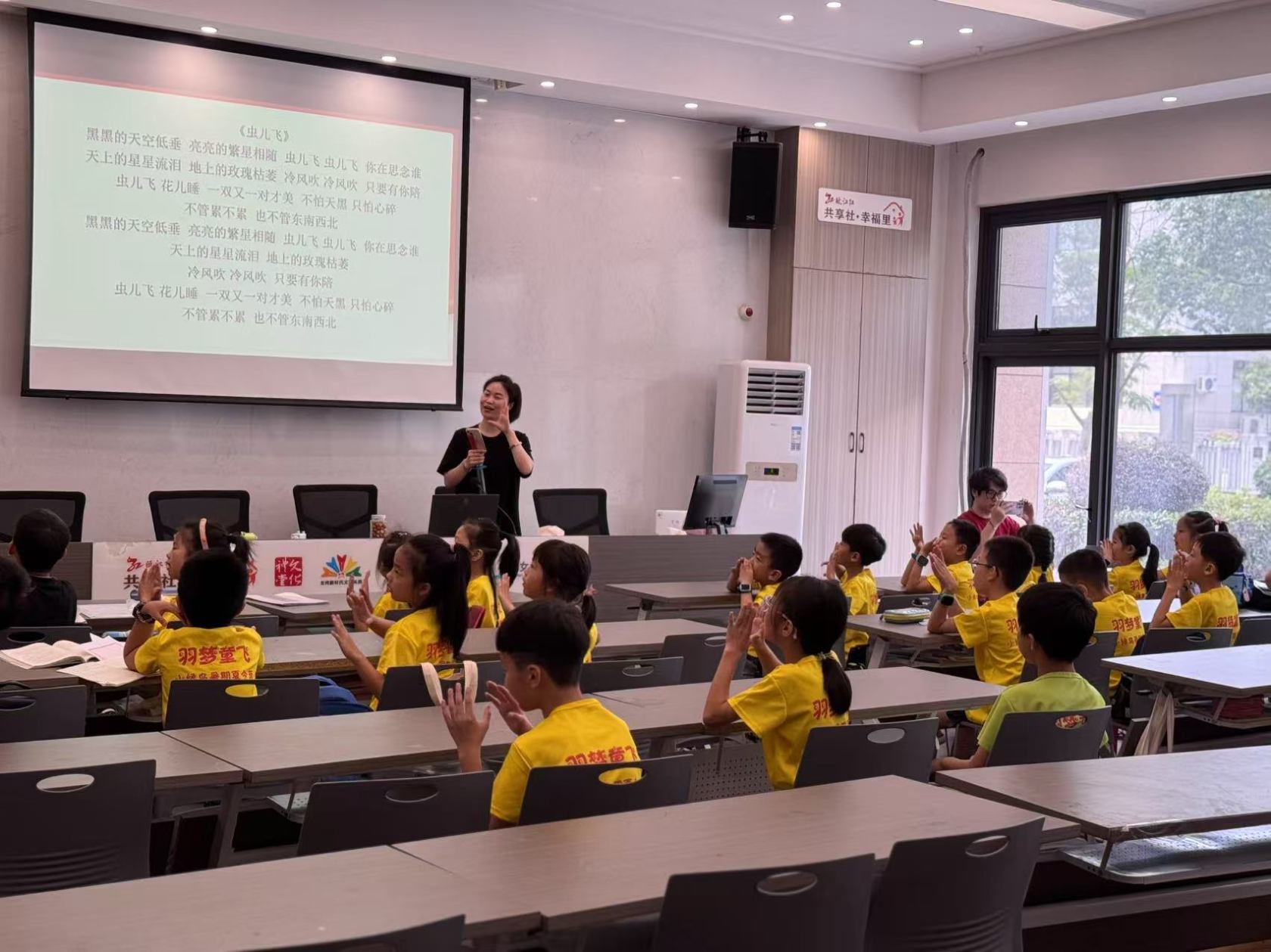 分享结束后,老师带着孩子们复习昨天学的歌曲《虫儿飞》,耐心地一对一纠正音准、指导节奏。