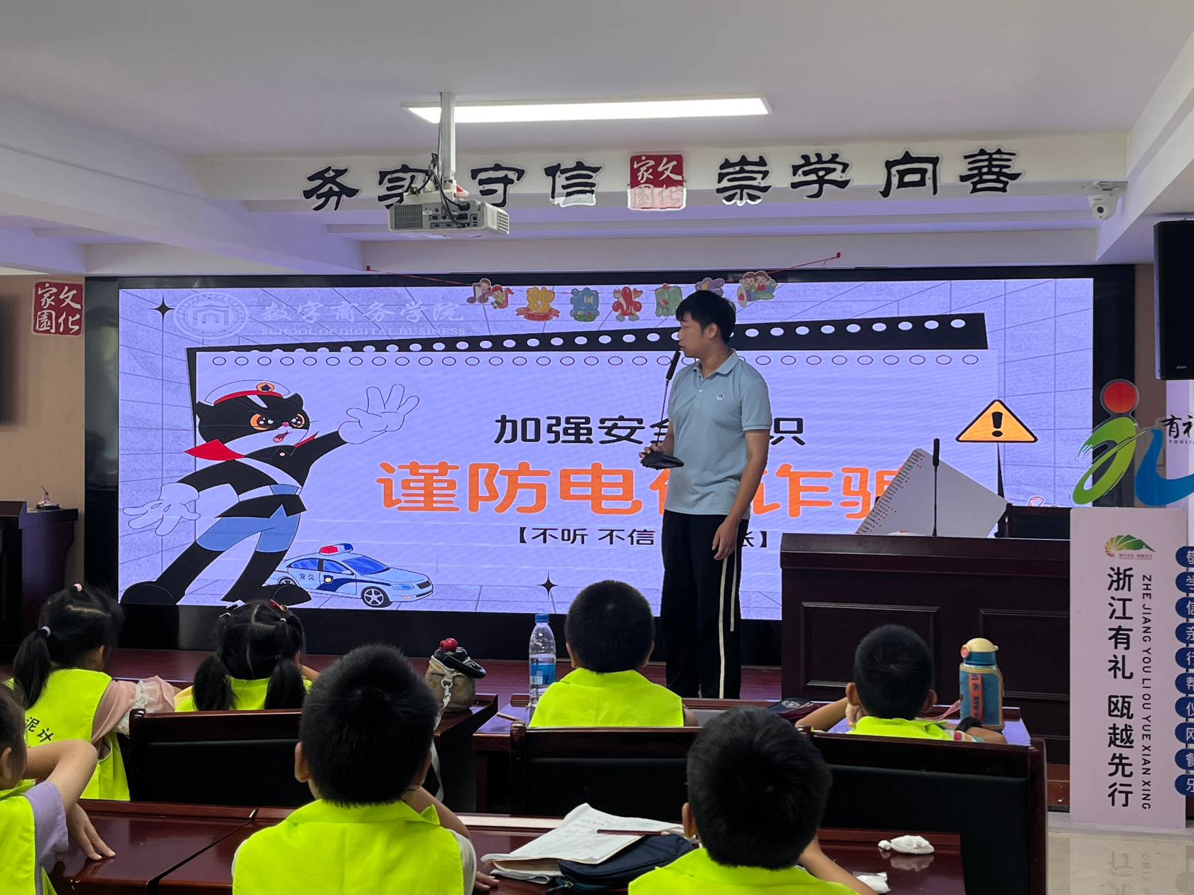宣讲堂课的时间虽短,但安全知识的种子已悄悄在孩子们心中发芽。数字商务学院“火眼金睛”社会实践队用实际行动践行社会责任,希望通过这样的活动,让安全意识深入每个孩子心中,也带动更多人关注安全、守护平安,共建美丽平安浙江。