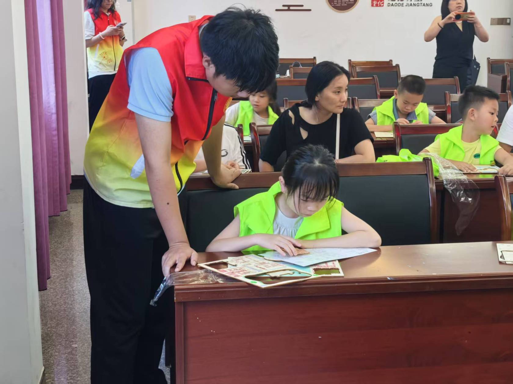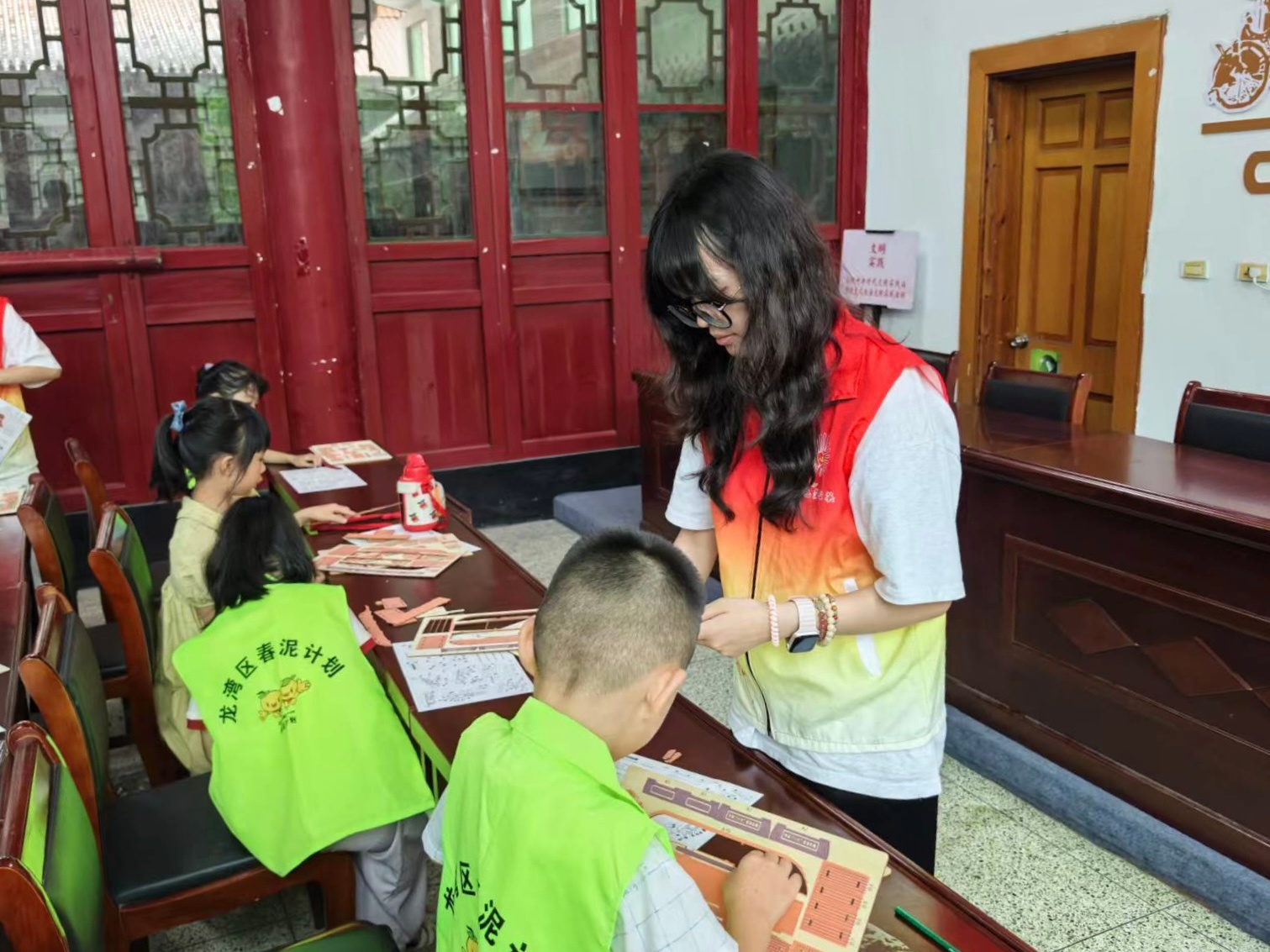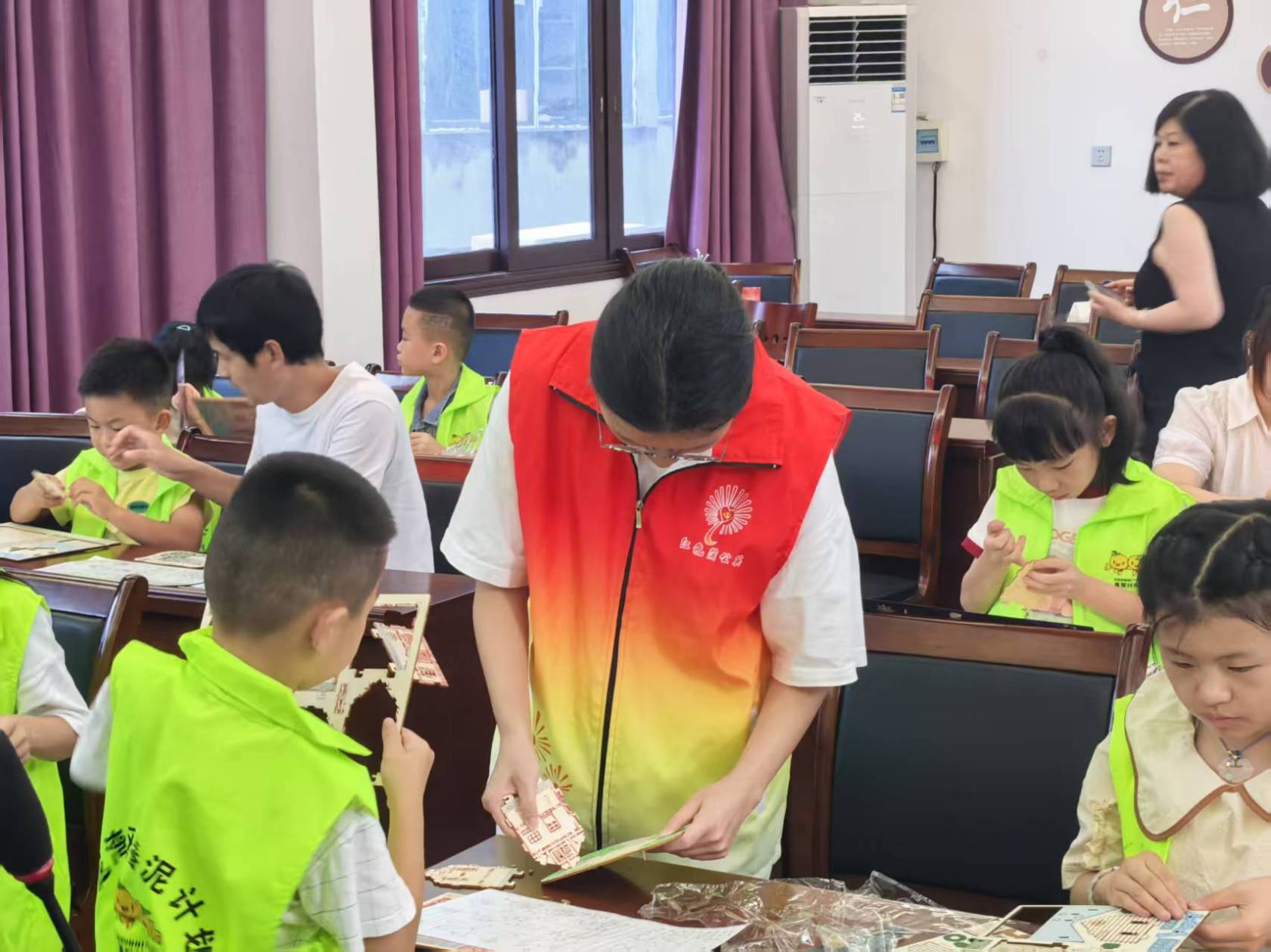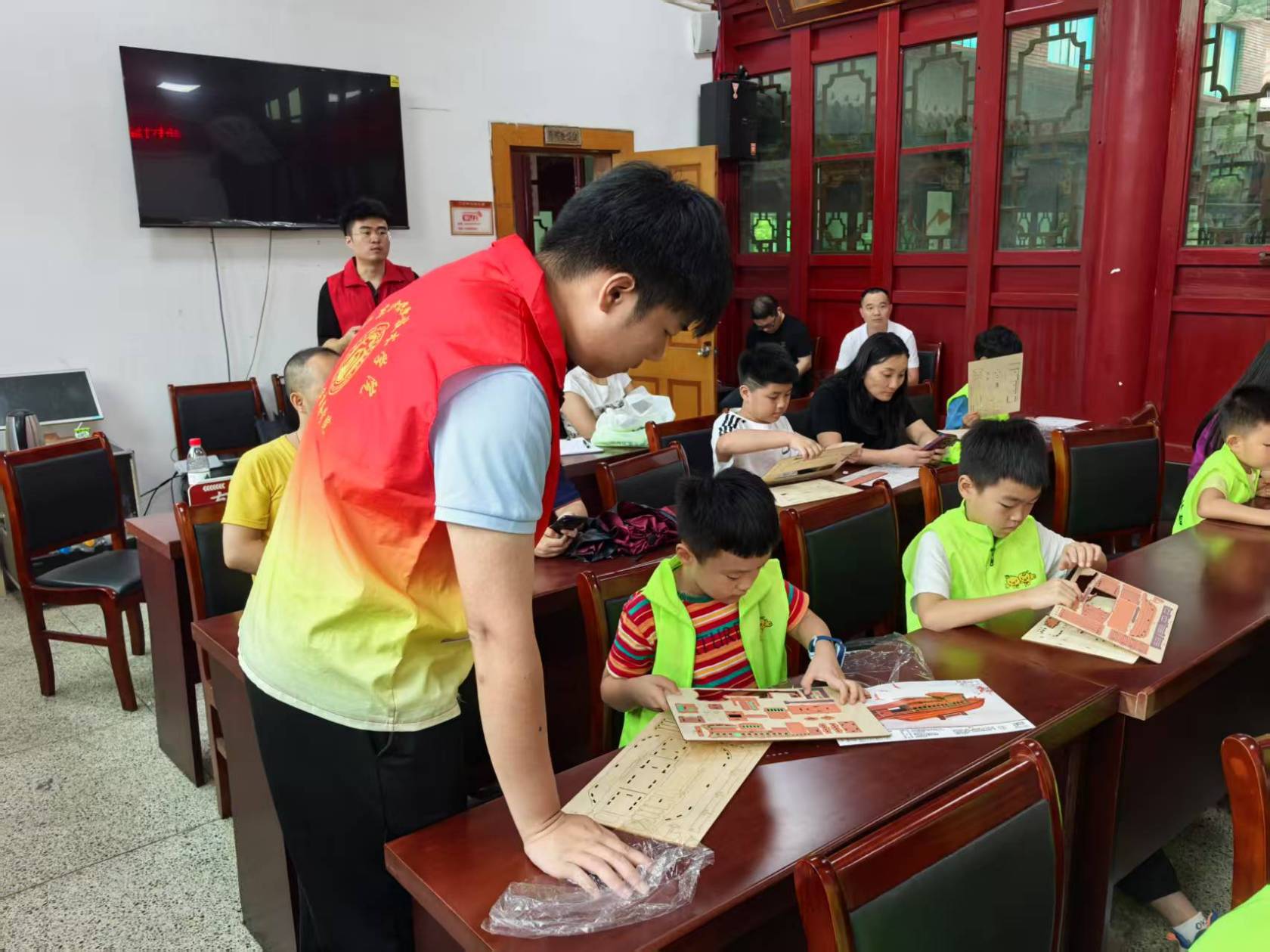 随后的“小小建筑师”手工环节又一次点燃了孩子们的兴致。在天津村文化礼堂里,小朋友们变身“小小建筑师”,动手搭建巴厘岛房屋。一块块普通的木料在指尖流转,很快变成了带着热带风情的手工艺品,也帮助提高了小朋友们的动手实践能力。